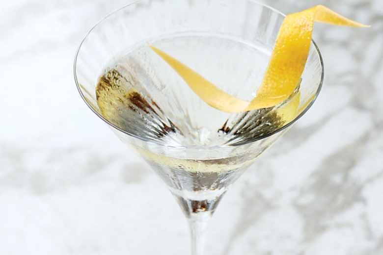- Using a small serrated knife, remove a 1″ strip of peel from lemon (some white pith is okay); it should be stiff enough to provide some resistance when bent. Twist over drink to express oils; discard. Garnish with a lemon twist.